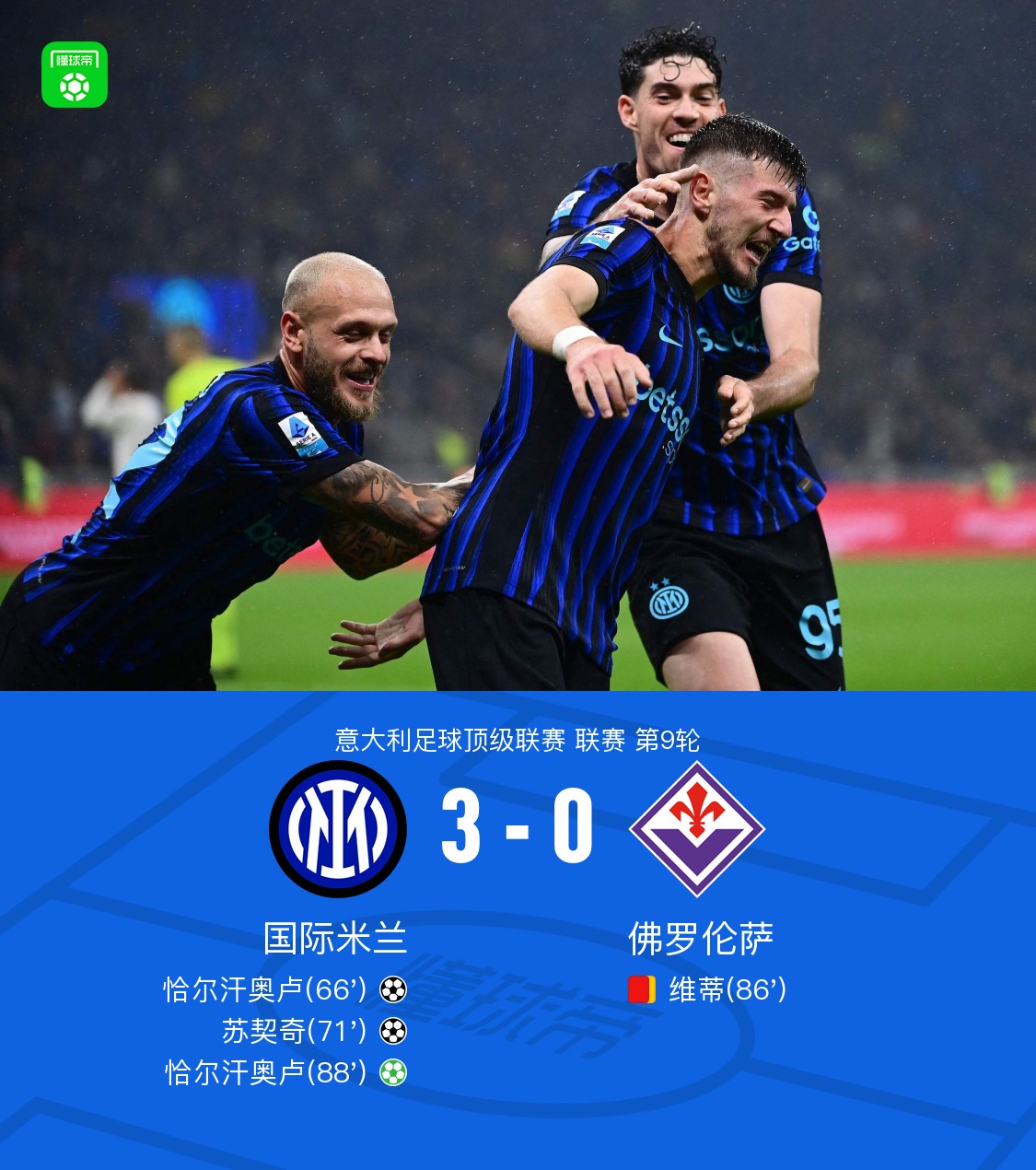 剑南春|国米3-0十人佛罗伦萨,恰尔汗奥卢双响,苏契奇建功